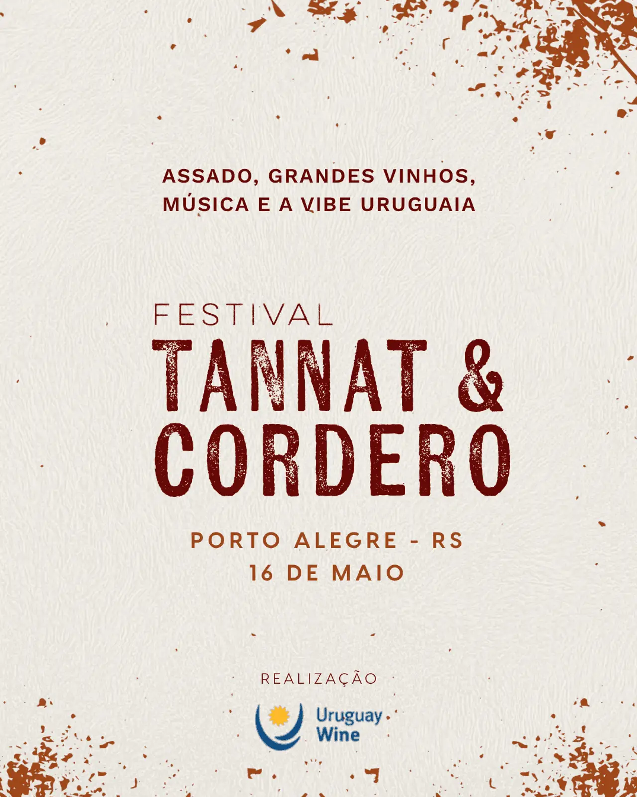 Apresentado pelo Uruguay Wine, o Festival Tannat & Cordero chega a Porto Alegre no dia 16 de maio para celebrar esses dois grandes ícones da cultura gastronômica uruguaia em um formato inédito, pensado para você descobrir, explorar e saborear o melhor desse país tão especial.